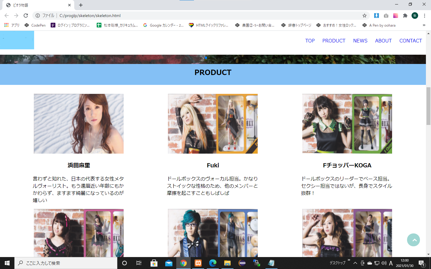 プログラミングスクールで基礎を学習し、卒業後は独学で、レスポンシブ対応やフレキシブルボックスを学習しました。